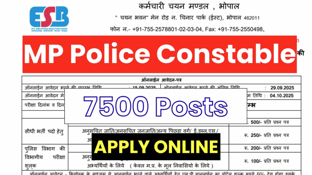 The Madhya Pradesh Employees Selection Board (MPESB) has officially released the notification for MP Police Constable Recruitment 2025. This is